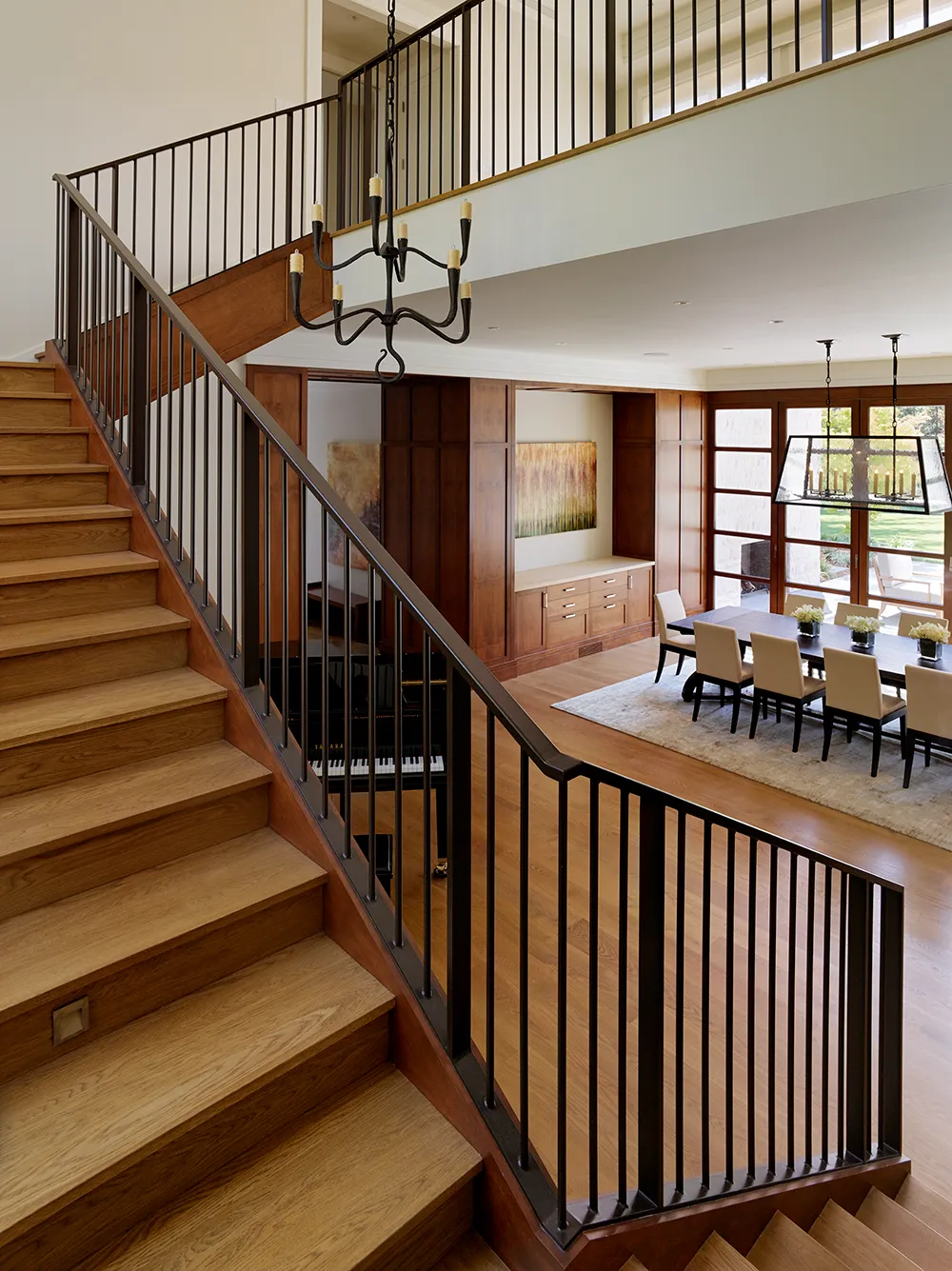 Designed as a family compound in the upscale community of Atherton, this multi-building residence consists of a main house, a separate pool cabana, and a garage. Architecturally the design takes inspiration from surrounding topography, with primary spaces framing expansive views out into the landscape. Structurally this translates into strategically placed steel moment frames that allow for large openings and expansive interiors as well as robust designs for wind and seismic loads. One of the home’s most striking features is an oversized dining room and adjacent great room. Both have large openings to the exterior, with outdoor fireplaces and gathering areas.
